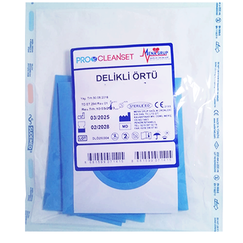 Steril Cerrahi Delikli Serviyet Örtüsü, cerrahi ve invaziv tıbbi işlemler sırasında işlem bölgesini izole etmek, steril alan oluşturmak ve enfeksiyon riskini minimize etmek amacıyla tasarlanmış tek kullanımlık, profesyonel bir cerrahi örtüdür. Ortasında bulunan delik sayesinde işlem yapılacak alan kontrollü şekilde açık bırakılırken çevre yüzeyler maksimum hijyenle korunur.